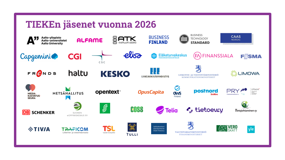 TIEKEn jäsenorganisaationa olette mukana luomassa kestävämpää, ihmisläheisempää ja kilpailukykyisempää tietoyhteiskuntaa ja edistätte kehitystä erityisesti digikyvykkyyden, datatalouden, digitaalisen taloushallinnon ja vastuullisen digitalisaation saralla. Yhdessä ratkomme ajankohtaisia haasteita ja kehitämme uusia toimintamalleja, jotka vievät suomalaista tietoyhteiskuntaa eteenpäin niin yksityisellä kuin julkisellakin sektorilla.